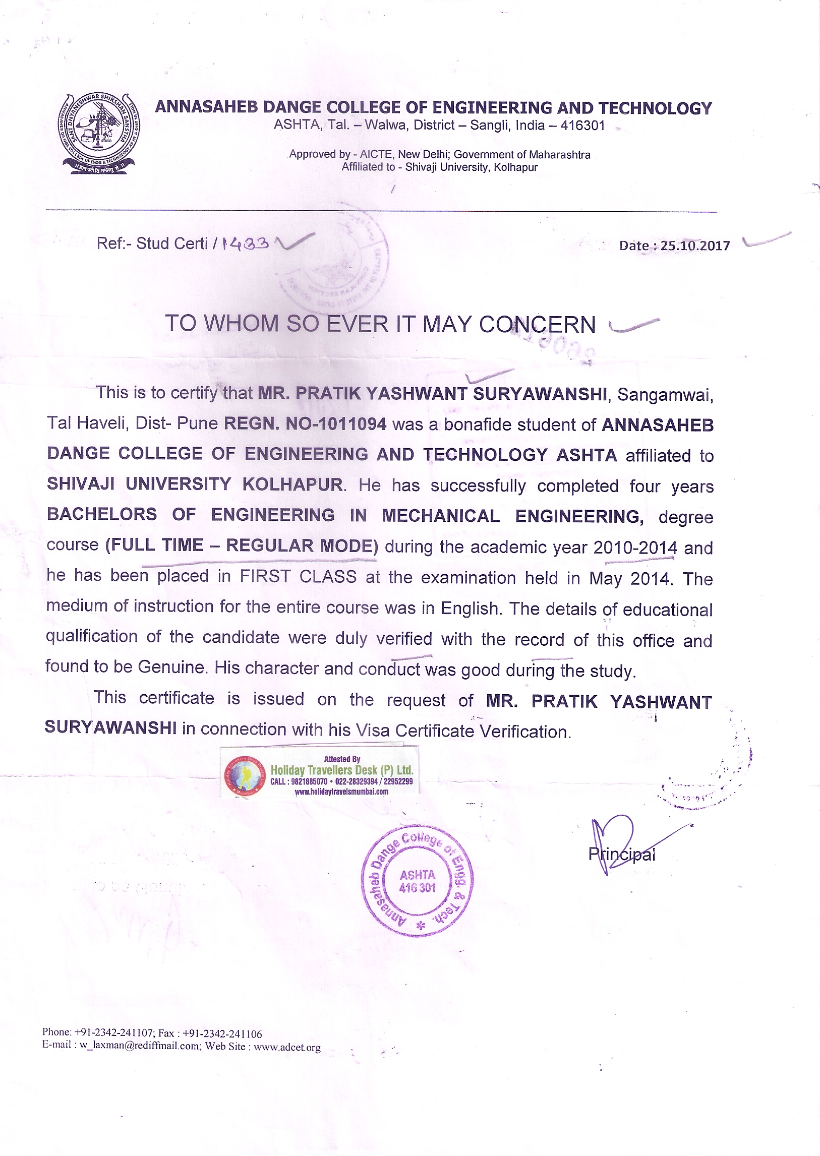 Engineering degree certificate attestation for Qatar from Mumbai.